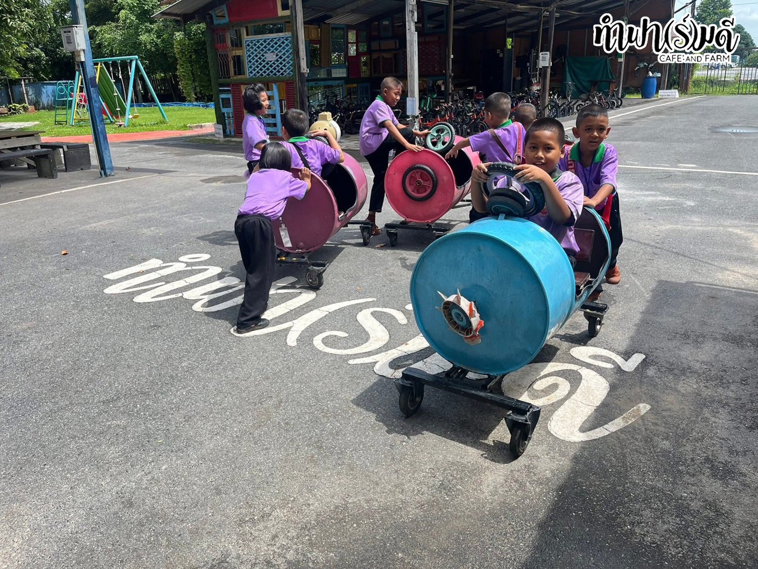 อยู่โรงเรียน หนูเรียนเยอะแล้ว โรงเรียนพาออกมาเที่ยวข้างนอก หนูก็อยากมาเที่ยวเล่นบ้าง ที่ทำฟาร์มดี จึงทำสถานที่ ให้เป็นสนามเด็กเล่นขนาดใหญ่