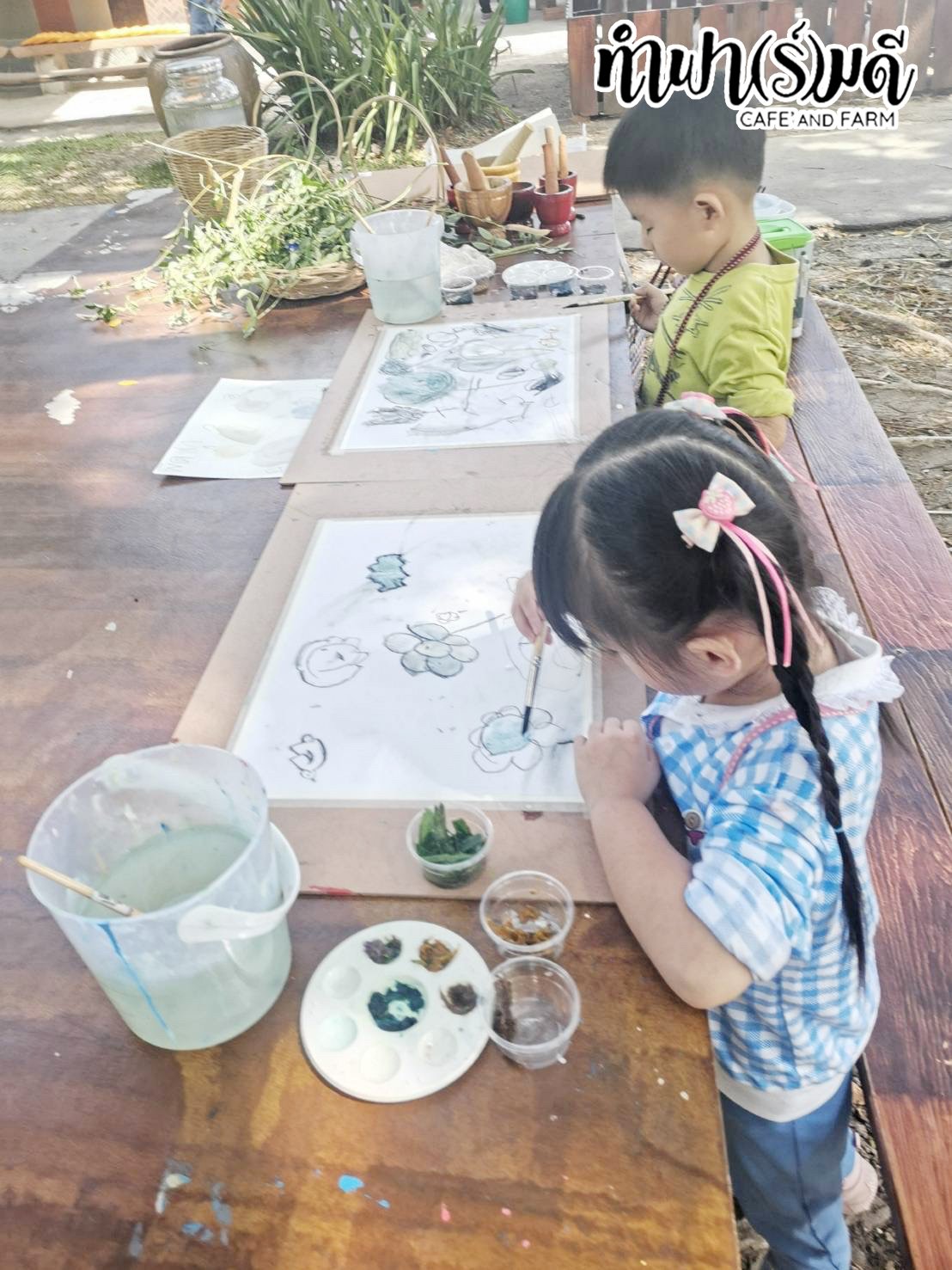 เด็กๆได้ทดลอง เรียนรู้ เรื่องสีจากธรรมชาติ นำสีธรรมชาติ มาสร้างสรรค์ เป็นผลงานศิลปะ