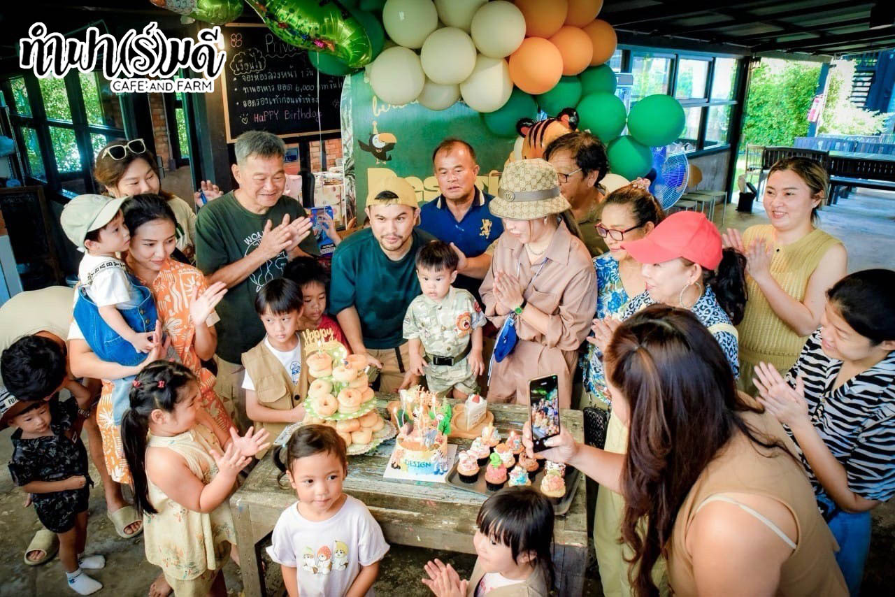 แม่จัดงานที่ ทำฟาร์มดี CAFE’ and FARM เผื่อให้เข้ากับบรรยากาศธีมซาฟารีด้วย