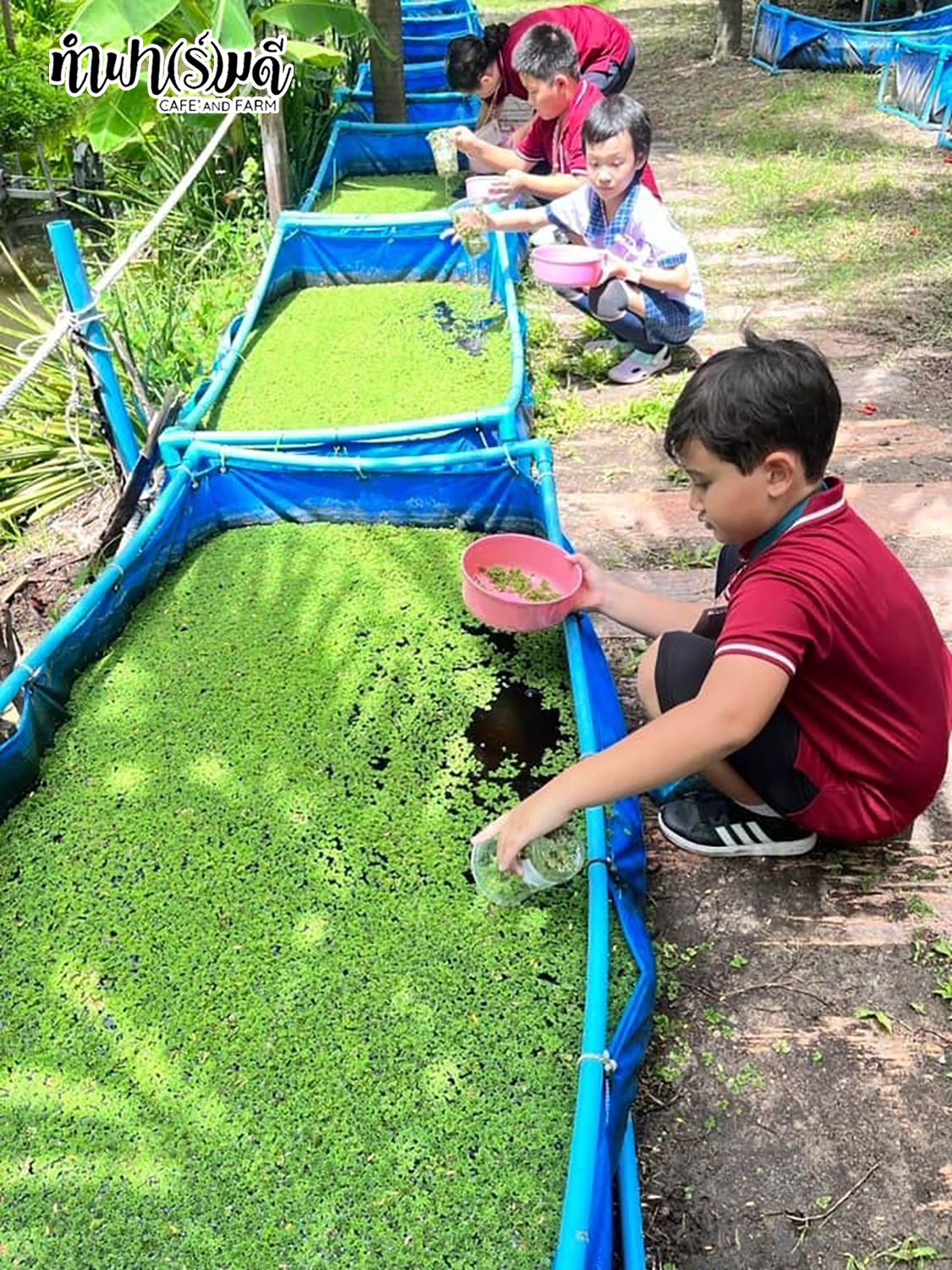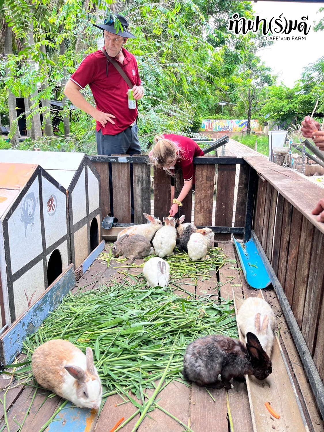 ให้อาหารสัตว์ภายในฟาร์ม เช่นน้องกระต่ายและน้องหมู