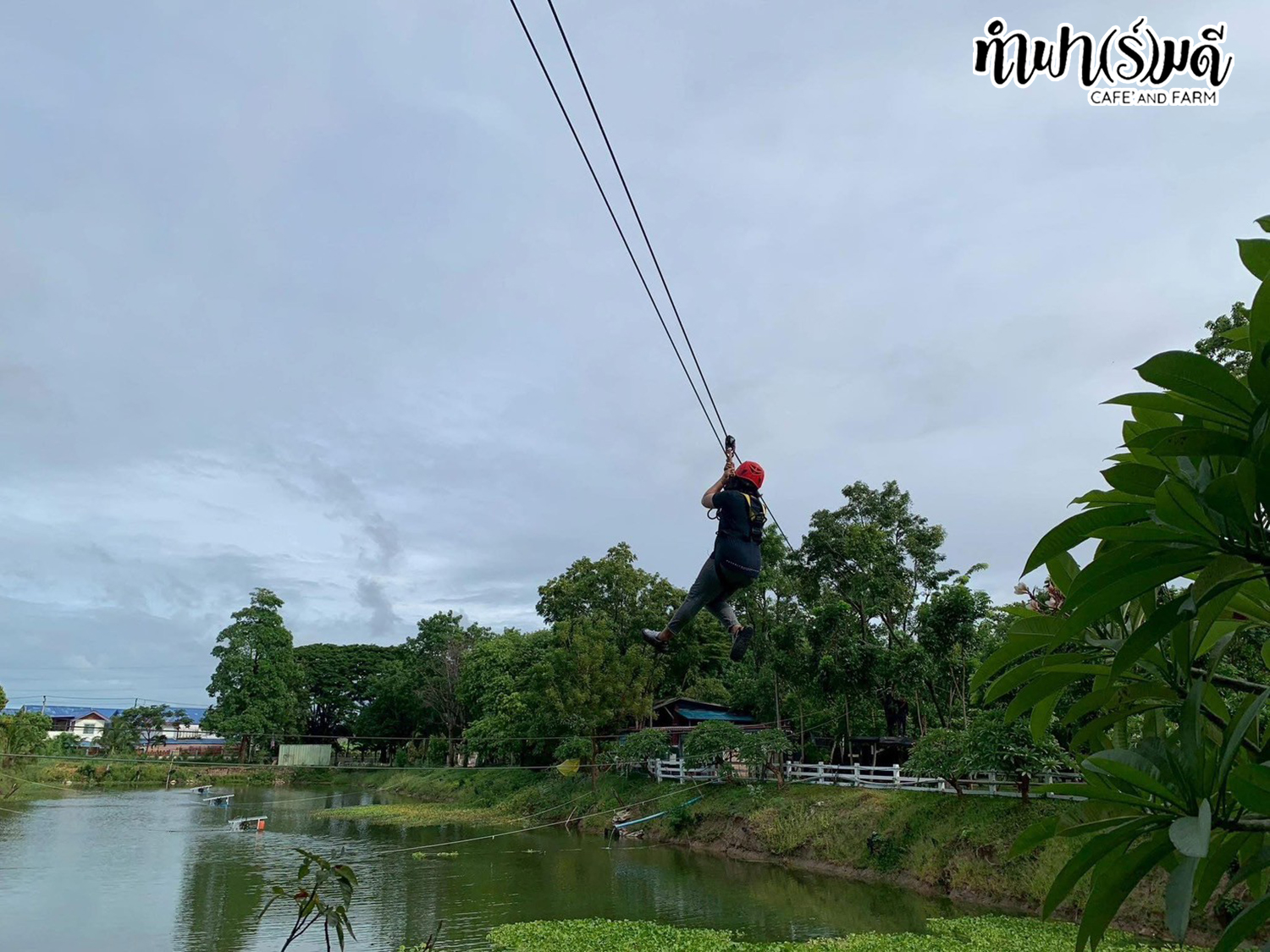 เล่น Zipline ข้ามแม่น้ำ