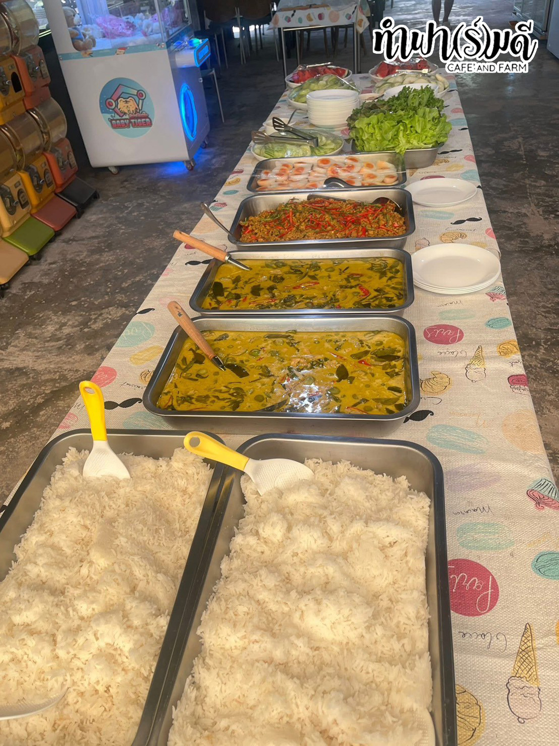 อิ่มอร่อยกับ อาหารมื้อเที่ยง แบบบุฟเฟ่ต์ รสชาติจัดจ้าน ข้าวคั่วกลิ้ง ผักสดๆจากฟาร์ม