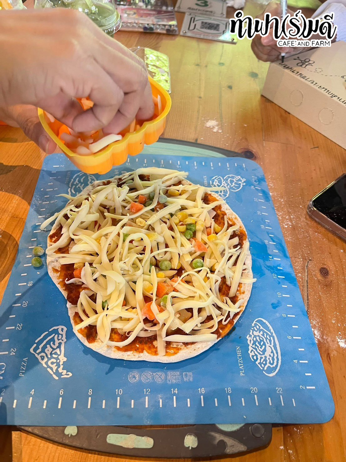 ทำพิซซ่า ตกแต่งกล่องพิซ่าแล้วทานเลย