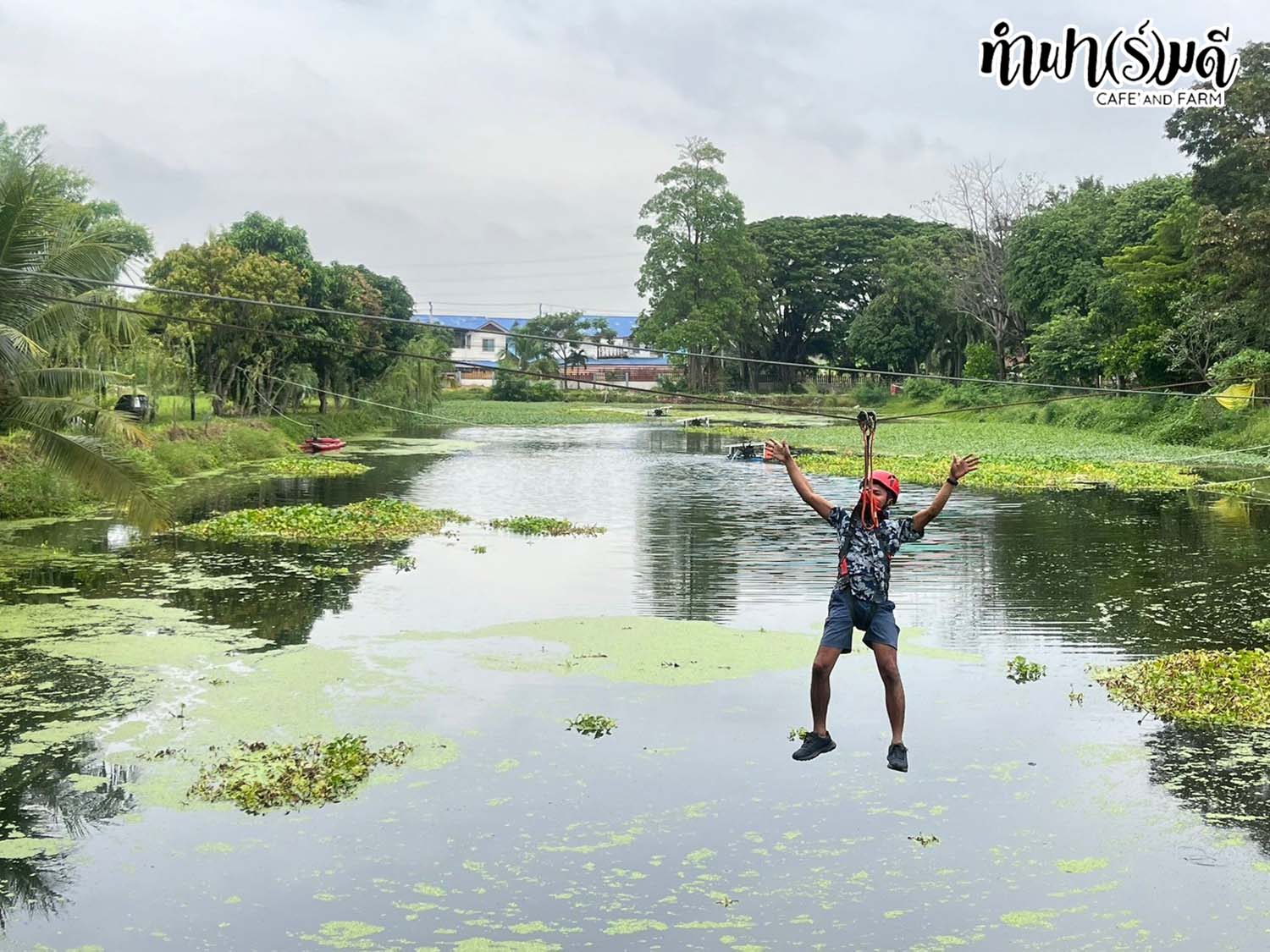 เล่น Zipline ข้ามบ่อน้ำ