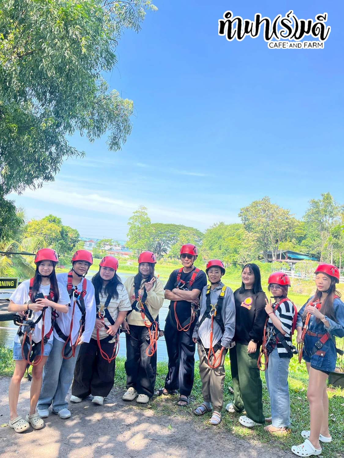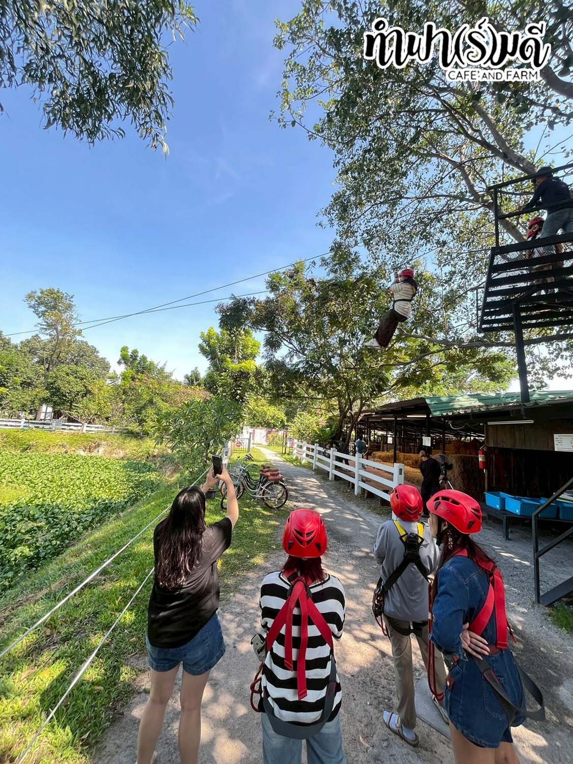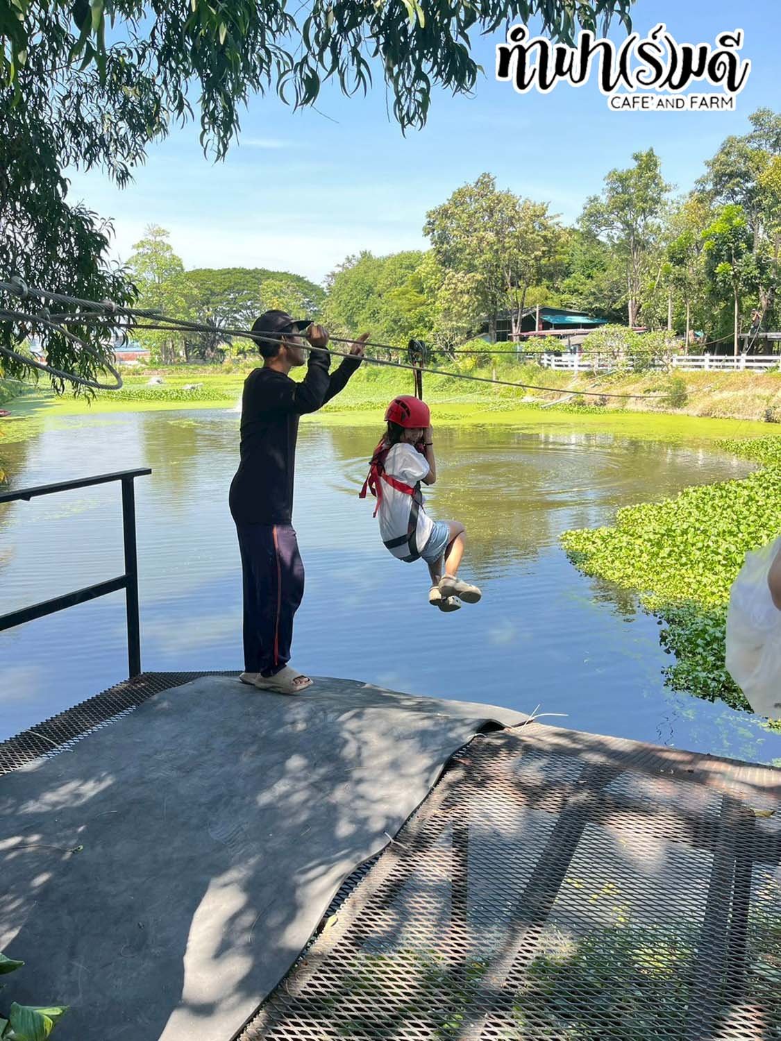 เล่น Zipline ข้ามบ่อน้ำทดสอบความกล้า ต่อด้วยทานอาหารกลางวันที่ทำฟาร์มดี
